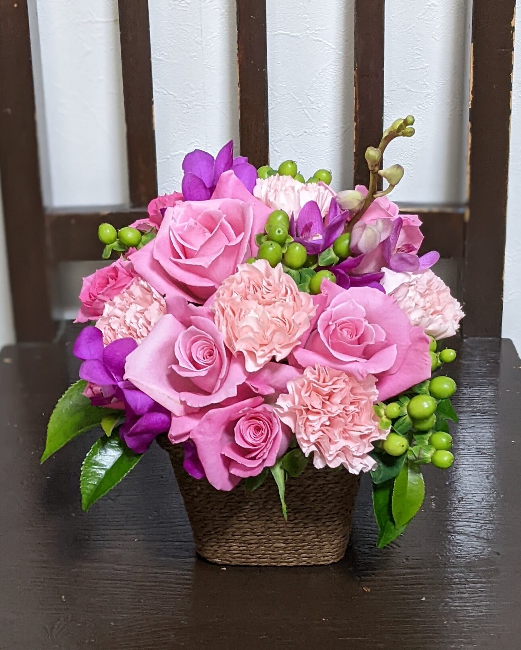 母の日のアレンジメントをご指定の色味でご用意します。